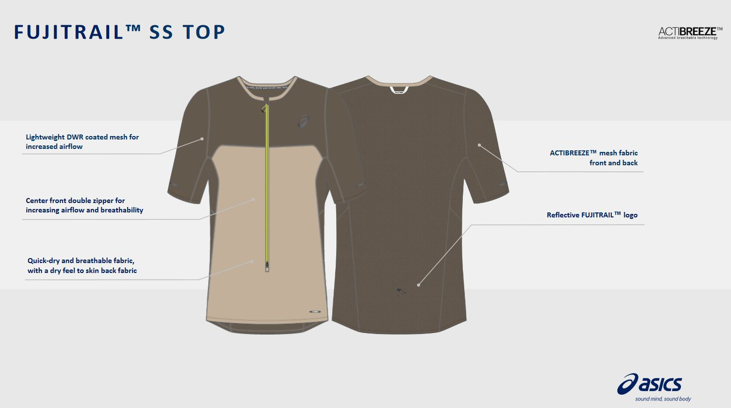 Produkty z kolekcji FUJITRAIL wpisuje się w ogólne założenia marki ASICS dotyczące projektowania odzieży – bieganie bez rozpraszania uwagi. Bezszwowa konstrukcja ma na celu wyeliminowanie otarć i zwiększenie swobody ruchów. Technologia ACTIBREEZE pomaga z kolei utrzymać odpowiednią przewiewność w zdecydowanie cieplejsze dni. Projektując kolekcję, uwzględniono rekomendacje ambasadorów ASICS, biegaczy trailowych. Ochronna odzież nie rozprasza ich podczas biegowej przygody w terenie. Kolekcja FUJITRAIL oferuje dedykowane, inteligentne miejsca do przechowywania. Sama odzież jest wiatro- i wodoodporna, gwarantując dodatkowe wsparcie niezależnie od warunków pogodowych na szlaku. Produkty posiadają nadruk inspirowany zdjęciami satelitarnymi kultowej japońskiej góry Fuji. Styl grafiki został zaczerpnięty z ręcznie renderowanych, tradycyjnych wzorów inspirowanych Krajem Kwitnącej Wiśni.
