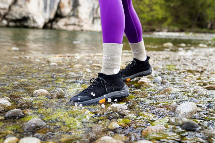 Obuwie zostało wykonane z dzianiny dwuwarstwowej. Buty z wełny merynosa mają niezwykłą zdolność, by dopasować się zarówno do temperatury ciała, jak i do temperatury zewnętrznej, w naturalny sposób regulując temperaturę stopy użytkownika.