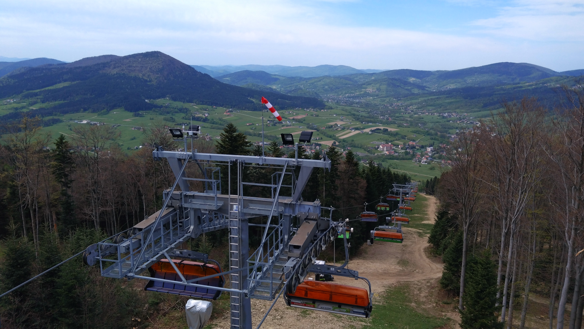 Jesteśmy na miejscu tuż po otwarciu wyciągu, więc bez problemu wjeżdżamy na górny parking, położony w sąsiedztwie dolnej stacji. Pierwsze co zauważyłem to liczne grupy rowerzystów na bardzo rozbudowanych jednośladach. Widać, że miejsce cieszy się popularnością. Druga rzecz, która przykuła naszą uwagę to obszerne widoki od pasma Gorców, przez Luboń Wielki, pojedyncze pasma Beskidu Wyspowego aż po Pogórze Wielickie.
