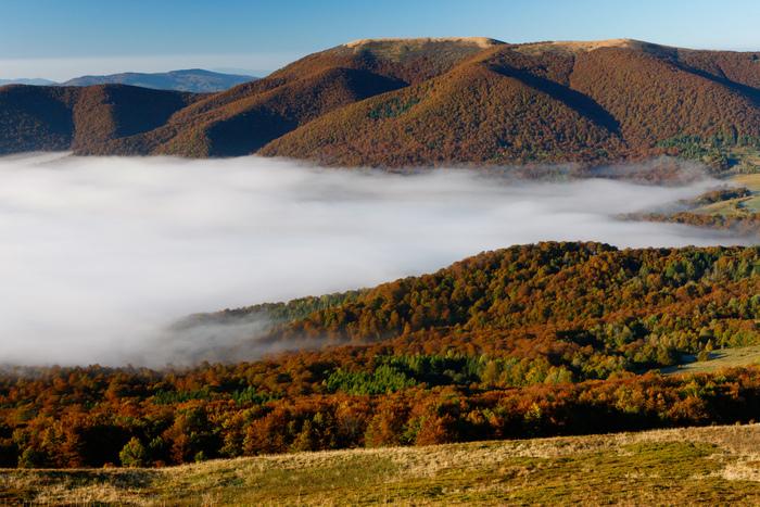 Jesień chyba każdemu kojarzy się przede wszystkim ze zmianą barwy liści drzew. Aby zrozumieć, dlaczego jesień w krainie Biesa i Czada jest tak wyjątkowa, należy najpierw poznać charakterystykę roślinności bieszczadzkiej. Tatry, Karkonosze, liczne pasma Beskidów – każdy z górskich obszarów posiada swój własny układ pięter roślinności. W Bieszczadach wyróżniamy trzy takie piętra.