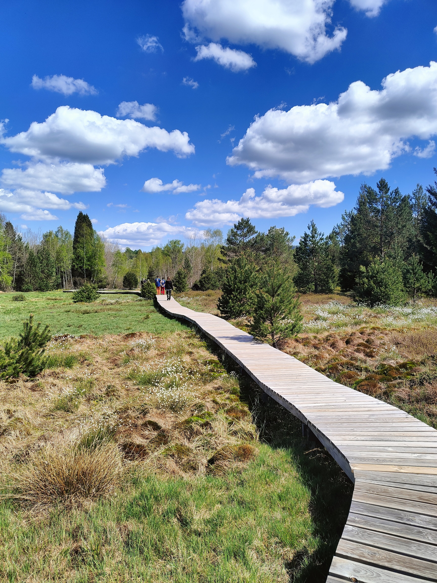 Bezpośrednio przy nim znajduje się mniejsze (6 ha) z dwóch torfowisk. Prowadzi przez nie ogrodzona kładka, która umożliwia zwiedzanie osobom poruszającym się na wózku inwalidzkim czy też rodzinom z małymi dziećmi. Drugie torfowisko - nieco oddalone i zdecydowanie większe (ok. 20 ha powierzchni), leży po drugiej stronie parkingu. Tu zwiedzający mają do dyspozycji niespełna kilometrową drewnianą kładkę, zawieszoną około pół metra nad torfowiskiem.