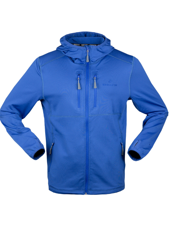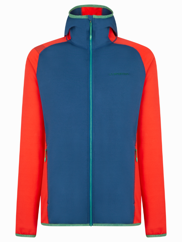 Druga warstwa termiczna z kapturem oferująca połączenie przewiewności i ochrony. Wyjątkowo wszechstronny model: można go nosić jako drugą warstwę lub kurtkę zewnętrzną podczas jazdy na nartach, wędrówek lub innych aktywności.