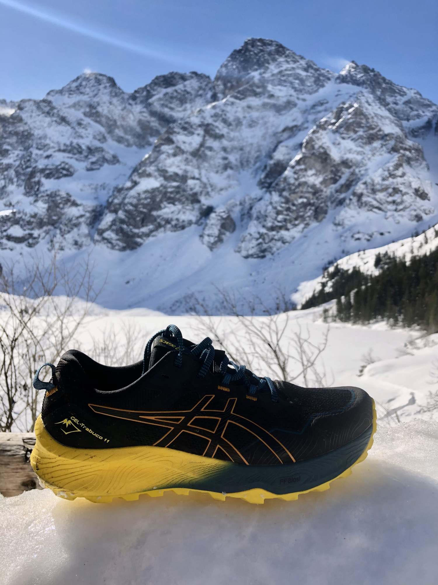 Wyciągając GEL-TRABUCO 11 z pudełka, dostajemy szerokiego buta, o klasycznym wyglądzie i grubą podeszwą zwiastującą bardzo dobrą amortyzację. Co więcej, pętla z tyłu pięty ułatwia wkładanie nawet jednym palcem i to w grubych rękawiczkach. A komfort na stopie czuć już po pierwszym założeniu. Ale i tak z duszą na ramieniu ruszyłem w nich na pierwsze dłuższe wybieganie w wiosennych Tatrach.