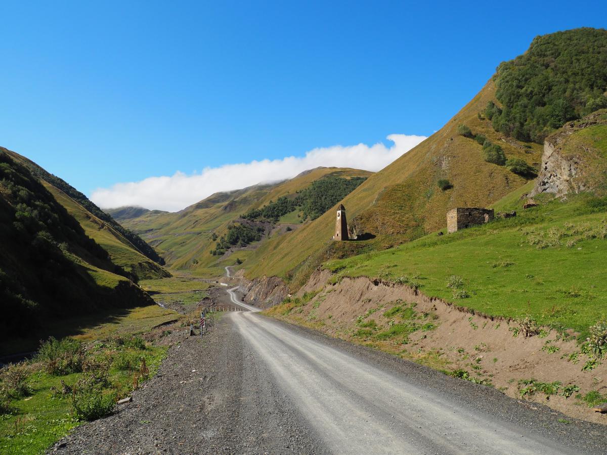 Też ruszam i dla wymyślonej publiczności w głowie prowadzę krótki wykład. Większość wież oraz wiosek fortec to dzieło Wajnachów, czyli Czeczenów i Inguszów. Dla przykładu wioskę Kistani i Szatili przejął po krwawych bitwach gruziński ród Czinczarauli z Gudano.