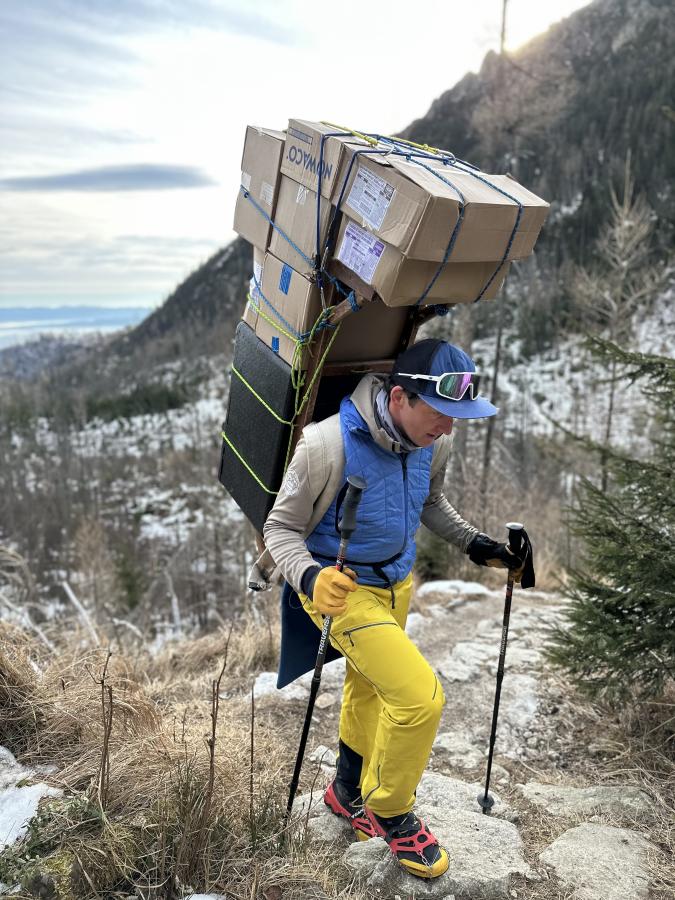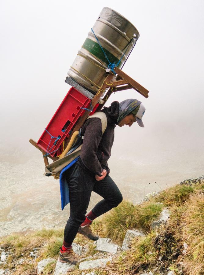 W Schronisku pod Rysami jest to prostsze, bo nie mamy dodatkowych nosiczy. Jest nas 10 osób, wszyscy pracujemy w schronisku i nosimy towar. Pracujemy w systemie dwa dni robocze i dwa wolne, więc po prostu idąc do pracy wnosimy towar, a schodząc znosimy śmieci. Natomiast do pozostałych trzech schronisk noszą zarówno ich pracownicy, jak i dodatkowi nosicze. Jak zatem duża jest społeczność nosiczy? Zawsze na początku sezonu organizujemy zawody, aby uczcić pamięć naszego kolegi, Juraja Petranskeho, nosicza, który zginął w lawinie. Zadaniem uczestników jest przeniesienie 100 kg na dystansie 2,5 km - do Chaty Zamkovskiego. Co roku w tych zawodach uczestniczy 20-30 osób. Ich bez wahania nazywam nosiczami.