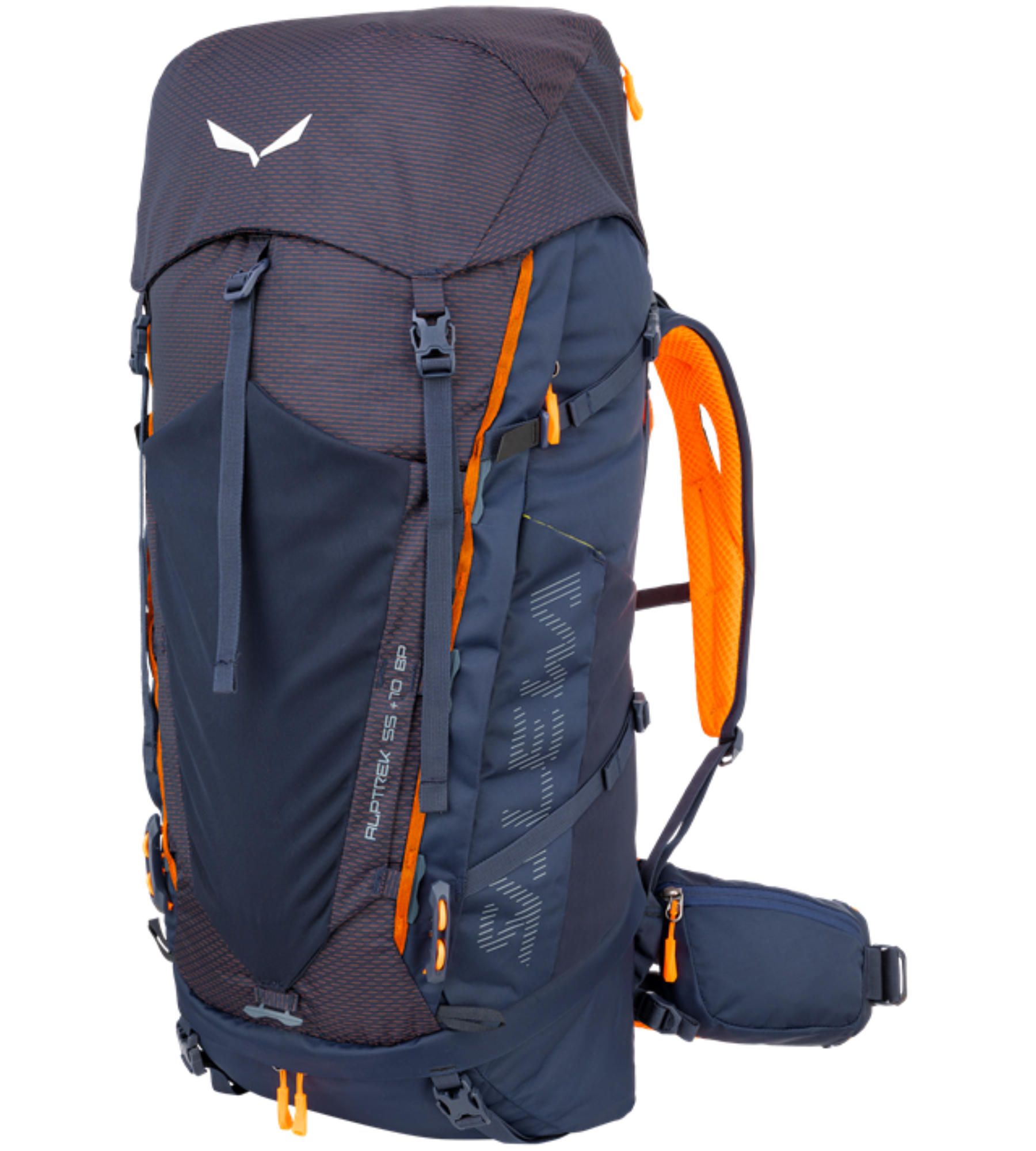 Alptrek 55+10 to wygodny plecak trekkingowy wykonany z lekkiego, bardzo odpornego na ścieranie nylonu z w pełni regulowanym systemem nośnym i pojemnością 55 litrów. Jeśli zajdzie potrzeba przenoszenia większej ilości sprzętu, istnieje możliwość dodania dodatkowych dziesięciu litrów za pomocą zdejmowanej przegrody w klapie, która służy również jako oddzielna torba transportowa. System nośny Dry Back Custom ma regulowaną długość pleców oraz anatomicznie ukształtowane, wyściełane szelki i pas biodrowy. Ponadto szelki zapewniają optymalne dopasowanie pleców na długich dystansach, a płetwa biodrowa gwarantuje bardzo dobre przenoszenie obciążenia. Plecak wyposażony jest w wyjście na system hydracyjny, pokrowiec przeciwdeszczowy, praktyczną zdejmowaną siatkę do mocowania dodatkowego sprzętu i dolne paski mocujące matę do spania.