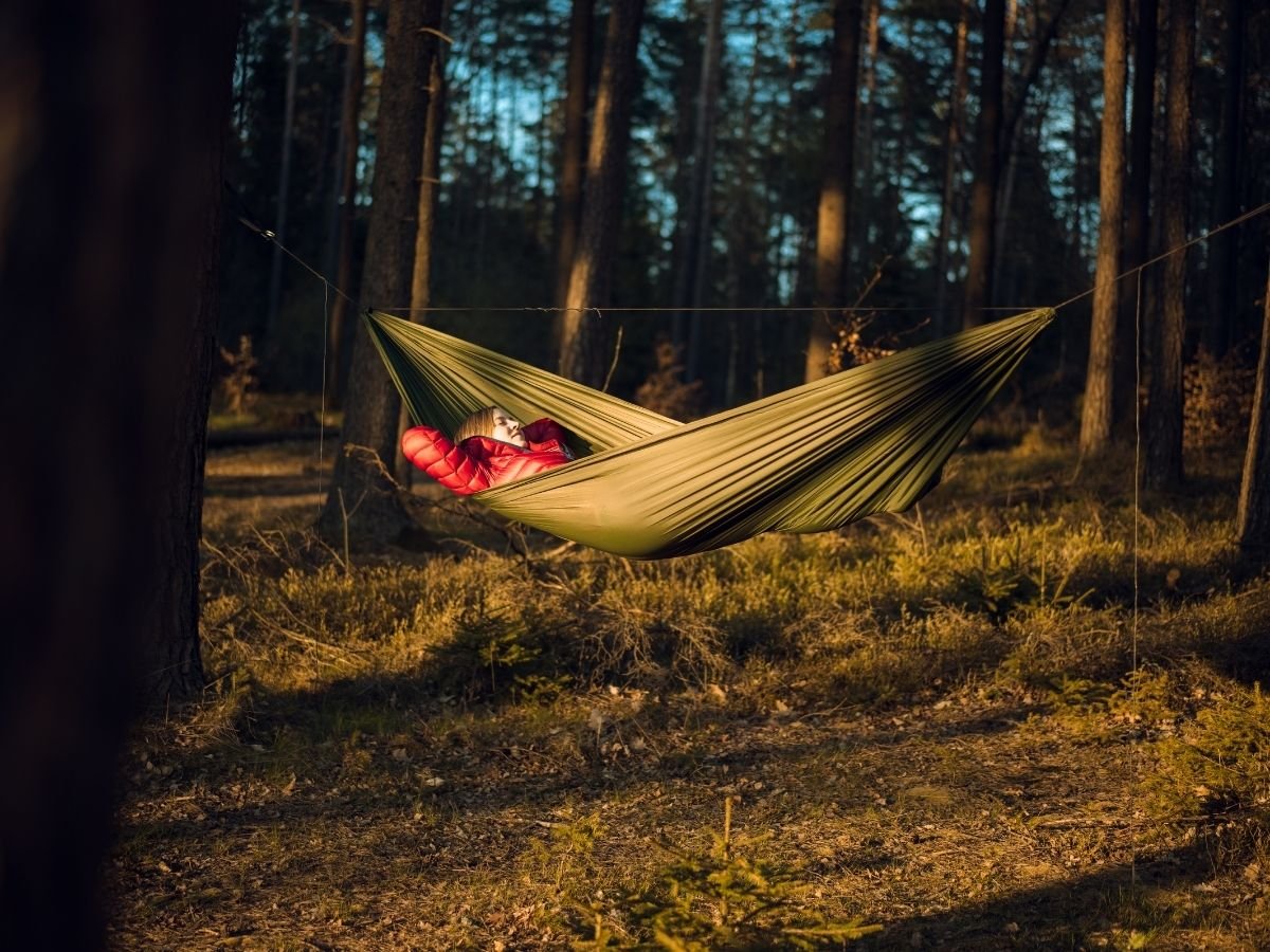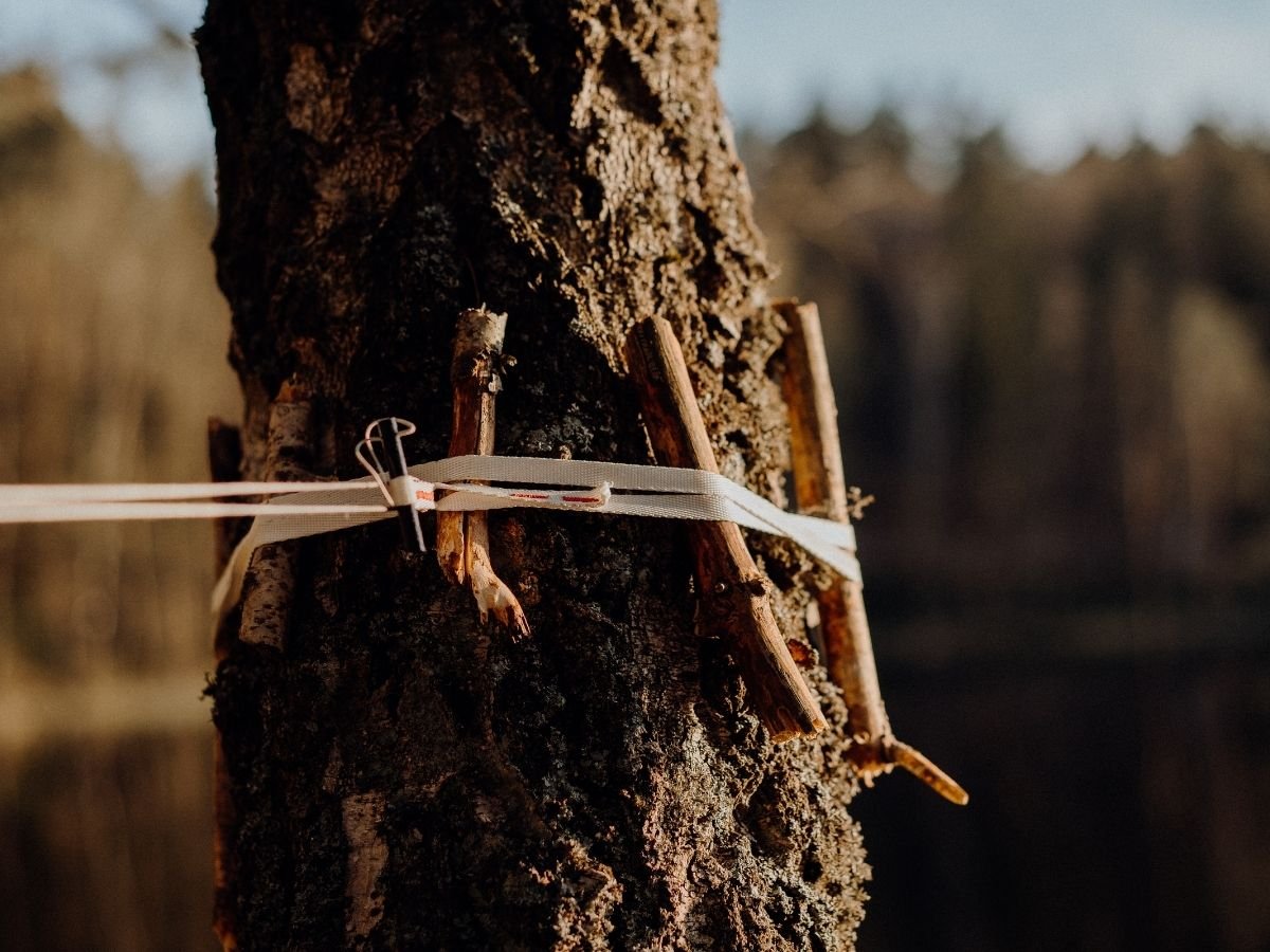 Wieszając hamak, używaj możliwie najszerszej taśmy, o szerokości minimum 20 mm lub zabezpiecz uprzednio drzewo mniejszymi patykami. Dzięki tym zabiegom kora drzewa nie zostanie uszkodzona, a Ty nie pozostawisz po sobie niepotrzebnych śladów.