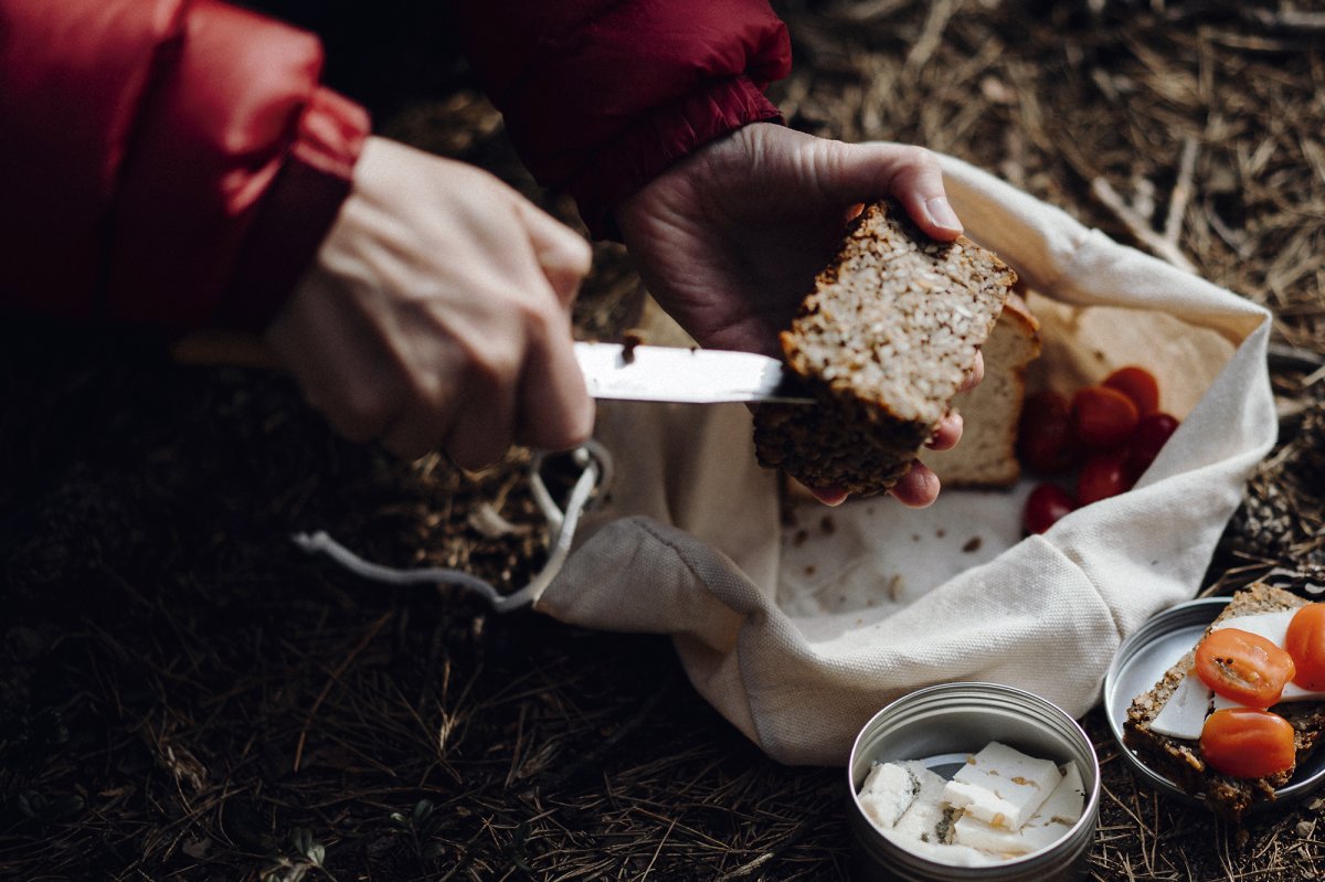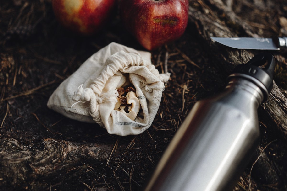 Moje śniadania oraz przekąski na szlaku to bardzo często orzechy, suszone owoce lub płatki owsiane. Przechowuję je w bawełnianych woreczkach, które mam w domu lub szyję ze starej odzieży. Zużyte ubrania świetnie nadają się do uszycia worków czy bandanek. Nie warto kupować specjalnego „turystycznego” pojemnika na żywność, jeśli kilkanaście pojemników już leży u Ciebie w domu. Małe opakowania po lekach mogą służyć do przenoszenia niewielkich ilości przypraw czy kremów.