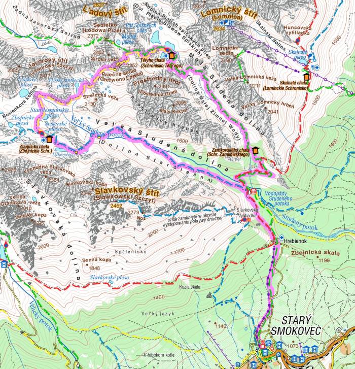 Szlak wiodący dnem Doliny Małej Zimnej Wody (słow. Malá Studená dolina) to kwintesencja tatrzańskiego piękna. Potężne ściany grani Łomnicy (słow. Lomnický štít) i odbijające się od nich echo płynącego potoku, do tego urzekająca uroda i roślinność dolnych partii. A wszystko zamyka imponująca ściana - tzw. Złote Spady (słow. Jazerná stena). Trawersujący je szlak przecina w pewnym momencie potok Małej Zimnej Wody, wyprowadzając nad próg wprost przed schronisko. Może narażę się nieco pasjonatom Tatr, ale zaryzykuję tezę, że to najpiękniej położony obiekt w całych Tatrach. Swoje robi też oczywiście wysokość - jesteśmy na 2015 m n.p.m.