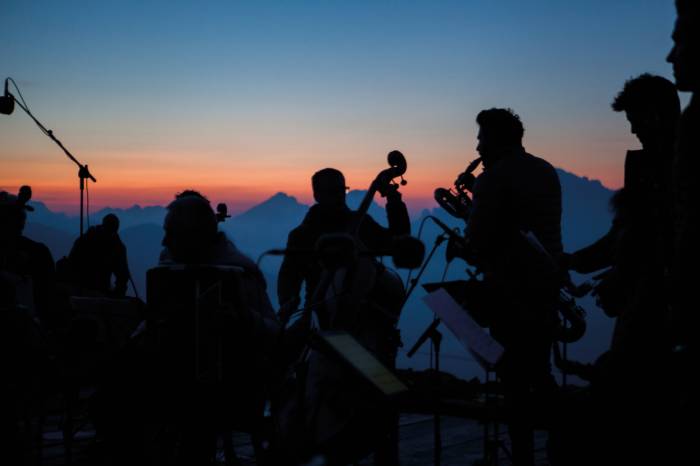 Na ustawioną na hali scenę wchodzą muzycy. Słychać trzask futerałów, potem pierwsze dźwięki smyczków, klarnetu, akordeonu – ale jeszcze nieśmiałe, na próbę, by nastroić instrumenty. – Buongiorno! – pada chwilę przed szóstą. Słuchaczy wita… geolog Massimo Bernardi. – Marmolada, Civetta, Pale di San Martino – nazywa kolejne masywy jak w dniu stworzenia. Wyjaśnia, że siedzimy na dnie prastarego, tropikalnego morza – na wulkanicznej wyspie pośród jaśniejących dolomitową bielą raf sprzed milionów lat. A potem życzy przyjemnego koncertu i gdy zza grani pada pierwszy promień, ze sceny płynie melodia. Mario Brunello przeciąga smyczkiem po strunach kilkusetletniej wiolonczeli. Dołącza altówka, kontrabas, muzyka potężnieje, rozlewa się pośród skał. Po prawej z doliny wpełza poranna mgła. Skalny grzebień Pale di San Martino rozczesuje ją na pasma jak nuty na pięciolinii.