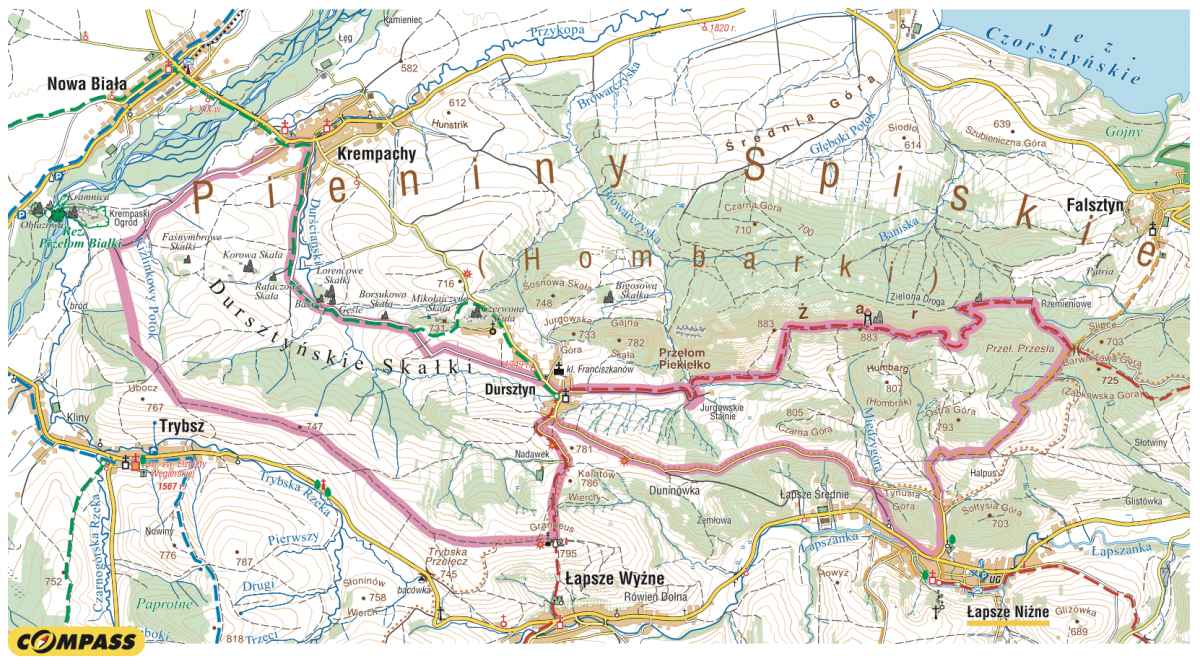 szlak rowerowy / z czerwony: Łapsze Niżne – Grandeus – 2h ↑; 1h 30 min. ↓