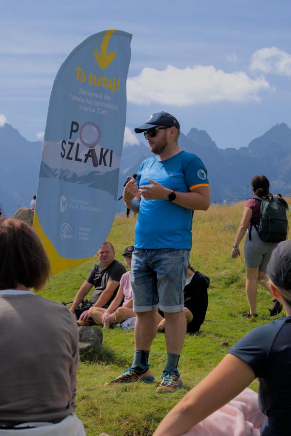 Trzeba jednak pamiętać, że w TPN pracuje mniej niż 10 strażników. Zazwyczaj reagują na zachowania naprawdę patologiczne. Na przestrzeni 3 lat zaobserwowałem patrol może 2 czy 3 razy. Zazwyczaj turyści słuchają strażników, edukatorów niekoniecznie, chociaż nie jest źle. Zwróciłem kiedyś komuś uwagę na zakaz palenia, po czym tam osoba zaczęła udawać, że mnie nie widzi. Odwróciła się i paliła dalej… Najczęściej jednak kiedy ktoś widzi logo TPN to nie dyskutuje. Opowiadam czasem anegdotę odnośnie kąpieli w tatrzańskich stawach. Jeśli zaczniesz od tego, że są tam żyjątka wodne i zanieczyszczamy ich dom, to usłyszysz, że ludzie od zawsze kąpali się w wodzie i to nic nadzwyczajnego. Kiedy jednak tłumaczę turystom, że schroniska biorą z tych stawów wodę i ona trafia później do ich zupy i herbaty, to reakcja jest zupełnie inna (śmiech). Raz na jakiś czas zdarzy się wlepienie mandatu, ale stawiamy raczej na edukację niż karanie.