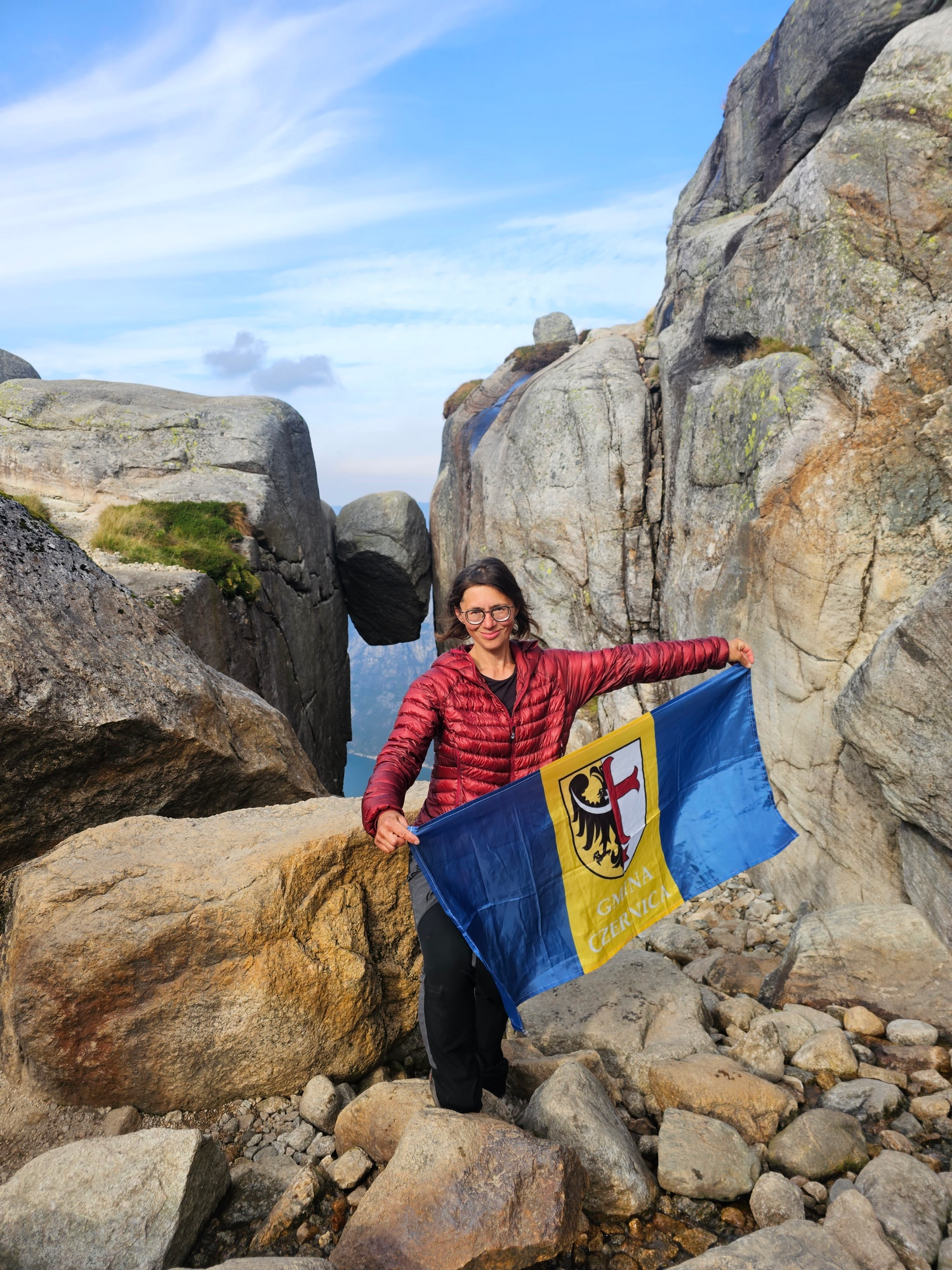 Ewa Chwałko na Kjeragbolten, czyli najsłynniejszy głaz Norwegii. Zdjęcie z archiwum Ewy Chwałko