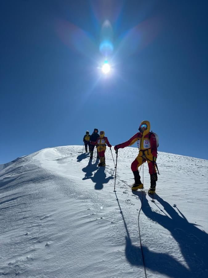 Nie, nazajutrz zwinęliśmy obóz i po całym dniu marszu rozbiliśmy następny, na wysokości 3000 m n.p.m. Wtedy po raz pierwszy w życiu ciągnęłam pulki. Ze względu na szczeliny szliśmy związani linami, z asekuracją pozwalającą na błyskawiczne odpięcie sanek, gdyby wpadły do szczeliny. Wszystko po to, by nas nie pociągnęły. Atak szczytowy rozpoczęliśmy następnego dnia, dość późno, dopiero około dziesiątej, bo musieliśmy się trochę przespać i znów stopić zapas wody do termosów.