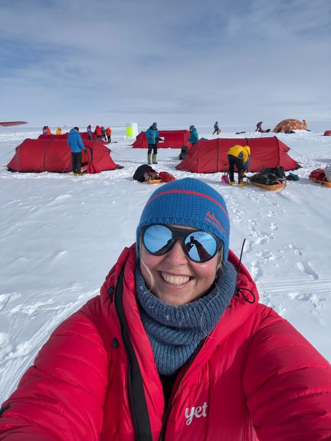 Uczestniczyło w niej pięć osób: Tomek Kobielski - przewodnik, Klaudia Cierniak-Kożuch, Marek Kubica, Marek Leszkiewicz i ja. Zaczęło się do falstartu, gdyż nasz samolot nie mógł wylecieć z Krakowa. Było to oczywiście stresujące, lecz Tomek przygotowując harmonogram lotu przewidział w nim duży zapas czasu na ewentualne komplikacje i opóźnienia. Zamiast więc 6. stycznia wystartowaliśmy 7., co uznałam za dobrą wróżbę: siódmego po siódmą perłę w Koronie Wulkanów. Przez Paryż i Santiago de Chile pofrunęliśmy do Punta Arenas, a stamtąd - po krótkim oczekiwaniu na okno pogodowe - do bazy Union Glacier. To jedyna prywatna, komercyjna baza na Antarktydzie działająca sezonowo latem, czyli od listopada do lutego, gdy trwa dzień polarny. Po wylądowaniu rozstawiliśmy namioty.