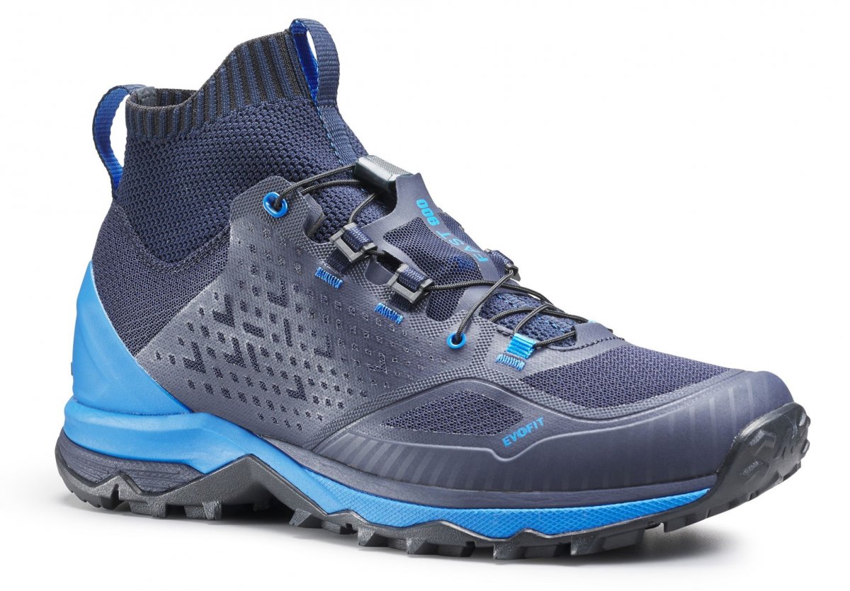 Buty Quechua FH900 - lekkie, przewiewne, wyglądem zbliżone do biegowych. System szybkiego wiązania pozwala na błyskawiczną regulację, dociągnięcie lub poluzowanie sznurowania w czasie marszu. Siateczkowa cholewka doskonale odprowadza pot, a zintegrowany z nią elastyczny mankiet zapobiega wpadaniu do buta kamyczków i gałązek.
