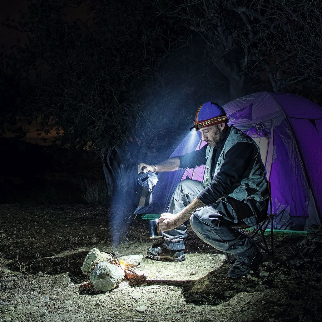 Najbardziej wyjątkową cechą HM60R jest jednak system automatycznej regulacji jasności. Po ustawieniu domyślnego tempa naszego marszu latarka wykryje przyspieszenie lub spowolnienie naszej prędkości, dostosowując moc strumienia światła. Dzięki temu będziemy mogli z wyprzedzeniem ocenić naszą trasę podczas biegu lub oszczędzić nieco baterii przy spokojniejszym marszu.