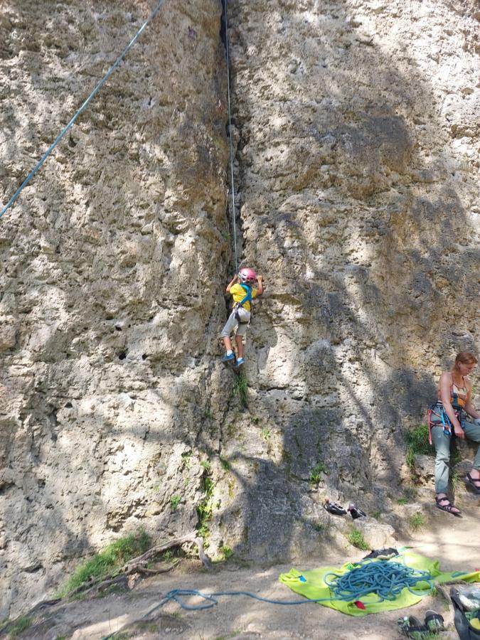 Przyjeżdżamy na kemping u Omy Eichler niedaleko Wolfsbergu i Obertrubach, między Bayreuth a Norymbergą. Obecnie kemping prowadzony jest przez Martę, córkę pierwszej gospodyni, nieżyjącej już Marii Eichler. To kultowe miejsce na mapie Franken, taki bawarski Camp 4. Jego początki sięgają końca lat 60. ubiegłego wieku. Przez te ponad 50 lat przewinęło się przez nie tysiące wspinaczy, w tym naprawdę śmietanka światowego sportu. Kiedy wiele lat temu przyjechałem tu pierwszy raz, nawet przez myśl mi nie przeszło, że kiedyś zawitam w to miejsce z własnymi dziećmi. Ale stało się.