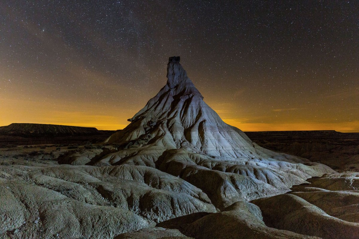 Drugie zdjęcie przedstawia ikonę pustyni, czyli formację Castil de Tierra. To miejsce tłumnie odwiedzane przez turystów. Znajduje się przy głównej drodze przez pustynię i trudno je pominąć. Postanowiłem zmierzyć się z nocnym niebem i wykonać inne ujęcie tak popularnego tematu. Noc była bardzo wietrzna, a ja musiałem biegać z latarką, żeby „pomalować” bocznym światłem skałę. Za każdym razem wracałem do aparatu z obawą, że wiatr go przewrócił. Na szczęście nic się nie stało. A na karcie pamięci i w mojej głowie zapisał się ten przepiękny obraz otulony nocą i milionem gwiazd.