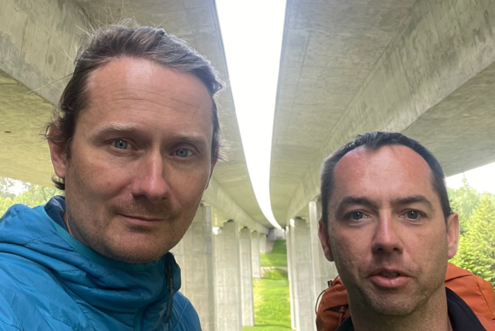 Kajetan Domagała i Andrzj Otrębski. Nad ich głowami nowa nitka zakopianki. Fot. Kajetan Domagala