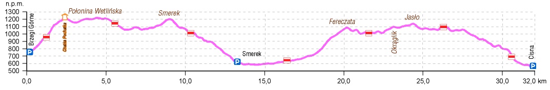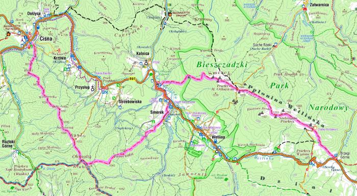 Zapada zmrok. Do bacówki pod Honem, naszej dzisiejszej miejscówki, mamy jeszcze trochę drogi przez Cisną – prawie 2 km po chodnikach i asfalcie. To jest ten etap, którego nasze nogi zdecydowanie nie lubią. Na szczęście słynny deszcz w Cisnej nie pada, a słynną piosenkę Krystyny Prońko o tym samym tytule znajdujemy wieczorem w serwisie streamingowym. Zmęczenie daje się nam we znaki. Nawet pokusa, aby zajrzeć do Siekierezady nie jest tak silna, jak prysznic i wygodne łóżko. Będzie więc po co wracać do Cisnej, aby zajrzeć do baru, gdzie każdy wolny skrawek miejsca wypełniony jest rzeźbami diabłów, a w stoły powbijane są siekiery.