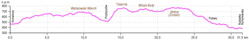 Najwyższy punkt: Tokarnia (778 m n.p.m.)