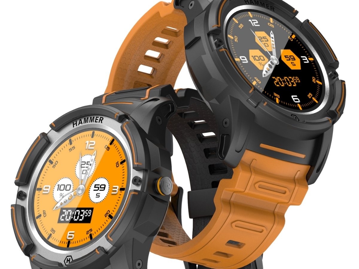 HAMMER Watch to pierwszy smartwatch marki popularnych, wzmocnionych telefonów i smartfonów HAMMER. Zegarek ma sportowy styl i zadziorny design, jest solidny i odporny. Zapewnia wsparcie dla ośmiu rodzajów aktywności. Ma GPS, czujnik do pomiaru tętna z nadgarstka oraz pulsoksymetr. Co ważne – dostępny jest na każdą kieszeń