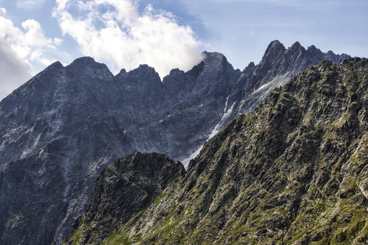 Takimi atrakcjami wita nas, jak to mówią Słowacy, Jahňací štít. A gdy w końcu stajemy na jego czubku, mój koszmarek ukochany raczy nas widokami na niemal całe Tatry. Od Wołoszyna, przez najwyższą w Tatrach Zachodnich Bystrą (2248 m n.p.m.), aż po Rysy (2503 m n.p.m.), Wysoką (2560 m n.p.m.), Lodowy Szczyt (2627 m n.p.m.), wspomnianą Łomnicę i Tatry Bielskie na deser. I jeszcze ta różnorodność – z jednej strony alpejski, szorstki landszaft, zaś z drugiej trawiaste zbocza Hawrania (2152 m n.p.m.) i Płaczliwej Skały (2145 m n.p.m.). Zdążyliśmy zresztą w ostatnim momencie, bo w przeciągu pięciu minut zza Kołowego szczytu wypełzają chmury i zakrywają cały spektakl. Jakby Jagnięcy zdawał się krzyczeć: „Wystarczy, na więcej nie pozwalam, proszę schodzić”. A nikt z nas nie ma zamiaru polemizować z tym potworem.