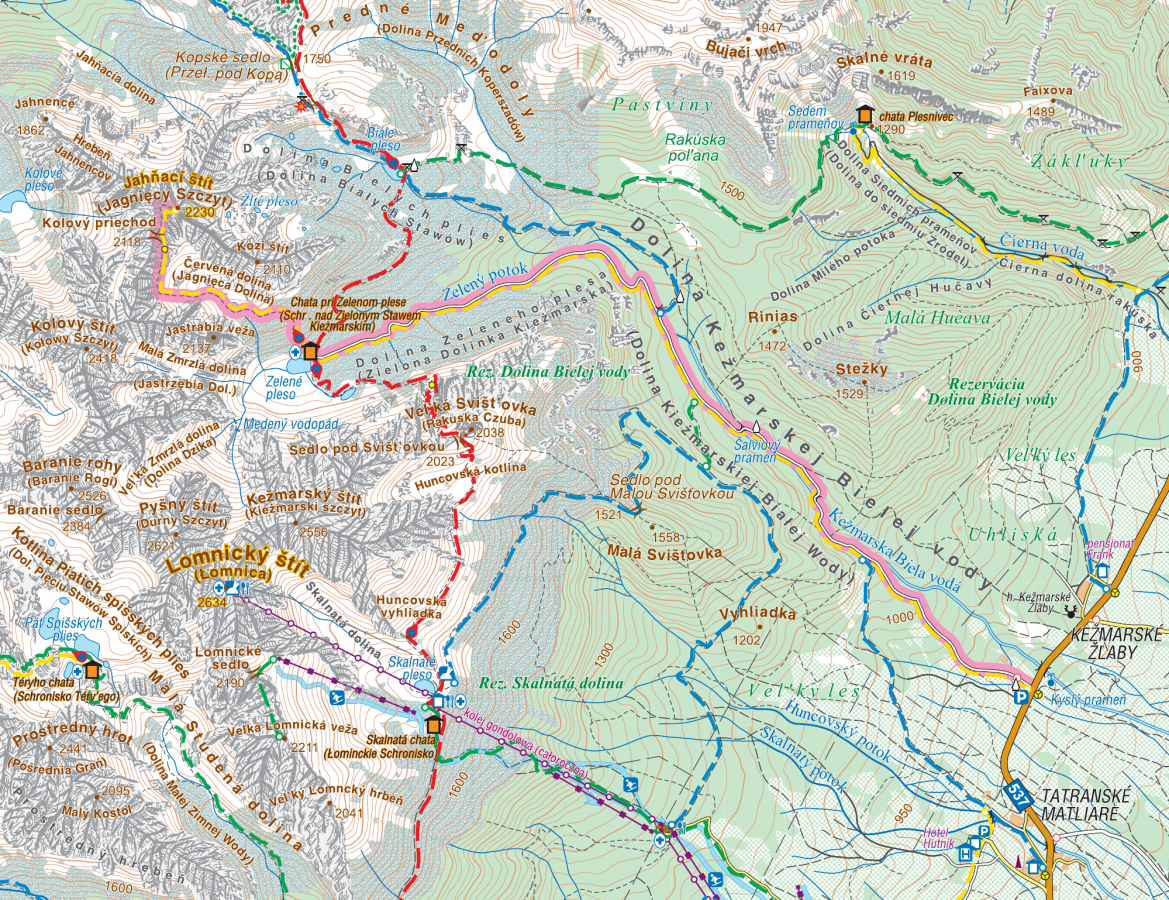 żółty: Parking Biela Voda – Chata pri Zelenom plese – 3 h h 2 h 30 min