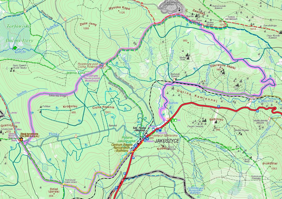 Dla większości narciarzy punktem startowym jest Polana Jakuszycka przy stacji kolejowej Szklarska Poręba Jakuszyce. Nie należy się przejmować tłumem turystów, bo właśnie tutaj znajdują się również liczne parkingi, na których można zostawić auto. W tym miejscu bez problemu skorzystamy z kilku wypożyczalni sprzętu, jeżeli nie mamy własnego. Są też liczni instruktorzy, którzy pomogą, jeśli jest taka potrzeba.