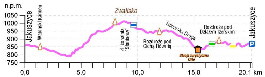 Słońce przyjemnie ogrzewa twarz, odbijając się blaskiem od śniegu. Mroźne powietrze oczyszcza nozdrza, inhalując płuca przy każdym wdechu. Jestem przy punkcie orientacyjnym Waloński Kamień, gdzie skręcam w prawo, ciesząc się prostym i łagodnym zjazdem. Teraz niemal na wyciągnięcie ręki widać przejeżdżającą obok kolej izerską, której torowisko prowadzi wzdłuż szlaku.