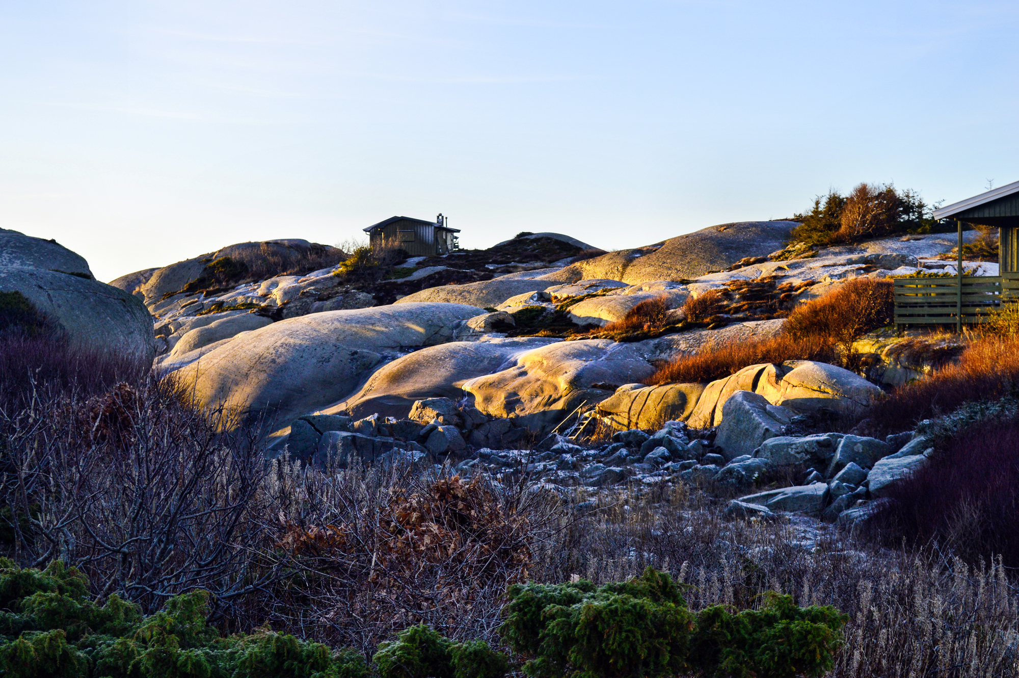 Przez przypadek trafiamy na ścieżkę, która wprowadza nas w labirynt nadmorskich skał. Tu zaczyna się nasza przygoda. Całe popołudnie błądzimy między ogromnymi bryłami. Wchodzimy na wielkie głazy, pokonujemy kolejne podesty – mamy spacer niczym w Górach Stołowych. Skały są idealnie gładkie, mokre od fal i morskiej bryzy. Z najwyższych miejsc widać pobliskie wysepki (w całej Norwegii jest ich ponad 50 tysięcy). Patrząc na nie, trudno rozpoznać, gdzie kończy się ląd, a gdzie zaczyna skupisko mikroskopijnych kawałków ziemi wystających ponad lustro wody.