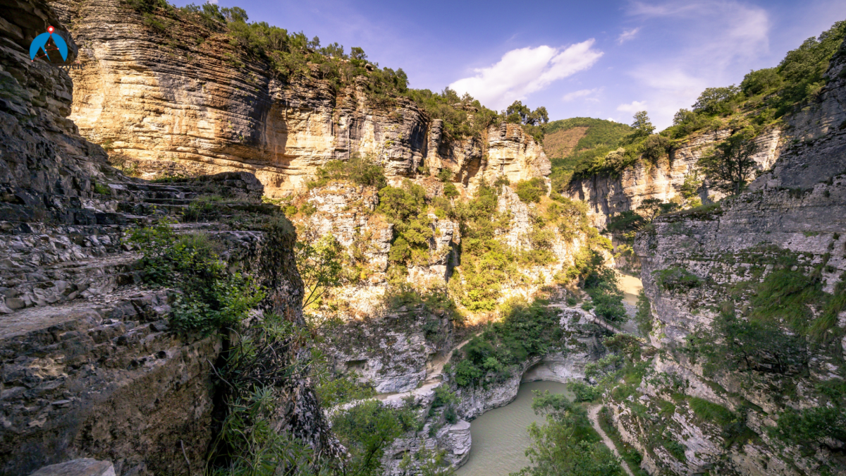 Zdecydowałem się pokazać dwa osobliwe miejsca. Pierwszym z nich jest Kanion Osum, liczący 26 km i osiągający 450 m głębokości. Wydrążyła go rzeka o takiej samej nazwie, a w wapiennych skałach znajdują się jaskinie. Podczas wiosennych roztopów oraz po większych opadach korytem rzeki możliwy jest rafting. Natomiast na samym dnie wąwozu znajduje się darmowy kemping, na którym bardzo miły Albańczyk prowadzi mały punkt gastronomiczny (chyba nie do końca legalnie), gdzie można spróbować lokalną potrawę i wypić kieliszek świetnej rakiji domowej roboty.