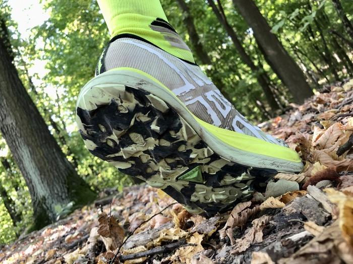 Ta trasa to w dużym uproszczeniu ostry zbieg i równie ostry podbieg, gdzie płytka karbonowa przekierowywała energię do przodu, a ja mogłem się skupić na podkręcaniu tempa bez utraty kontroli podczas biegu w dół. Zaskoczeniem na plus okazała się także amortyzacja w FF TURBO. Jest lekka i responsywna, co dało się odczuć nawet po kilku godzinach biegania.