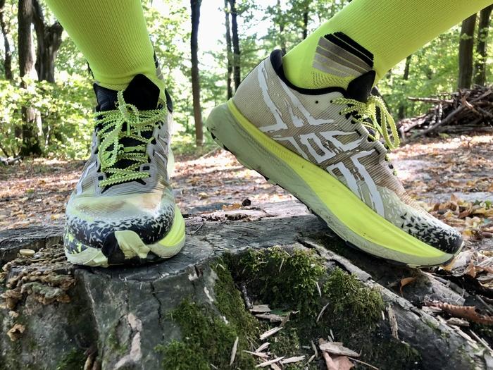 Na szczęście wygoda po włożeniu buta, rekompensuje wszystko. Siostrzane modele z serii FUJISPEED były dość twarde, zaś w METAFUJI TRAIL cała przestrzeń wokół kostki jest wyściełana miękkim materiałem. Efekt? Zero obtarć i uczucie, jakbym biegał w ulubionych kapciach. Do tego dochodzi udany patent z językiem zszytym z cholewką, dzięki czemu nie zwija się on i nie przesuwa w trakcie zbiegów. Zaś prawdziwym odkryciem są karbowane sznurówki. Wyglądają jak cienkie frytki i co do zasady nie mają się prawa poluzować ani rozwiązać.