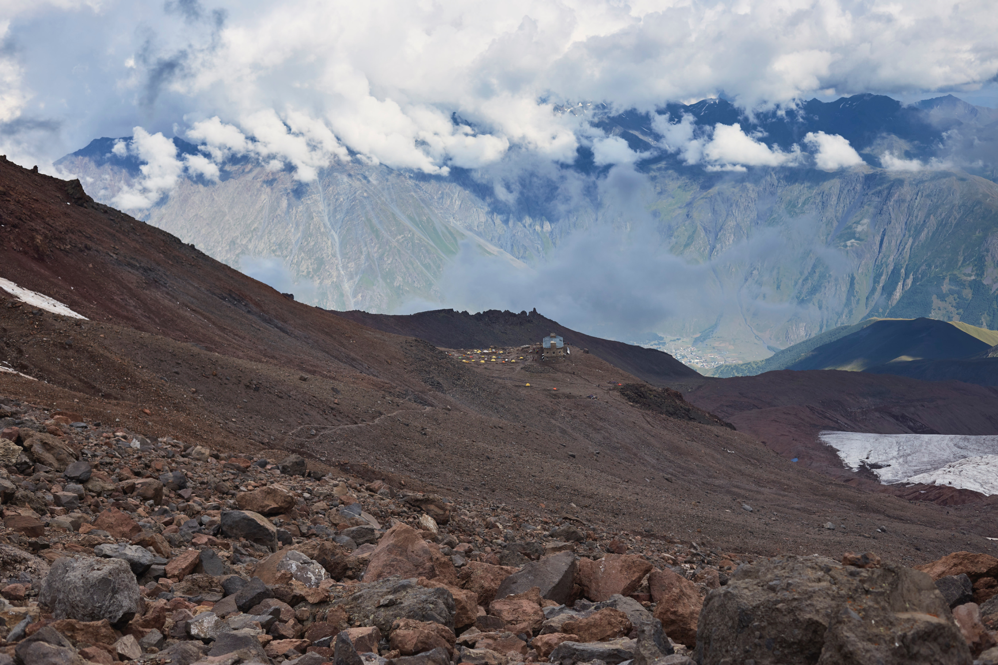 Z gruzińskiego Kutaisi, już wcześniej zamówiony kierowca, zawiózł nas do miejscowości Stepancminda (ok. 1750 m n.p.m.), która jest bazą wypadową w rejony górskie. Zajęliśmy pokoje w naszym guest housie i załatwiliśmy wszystkie sprawy formalne. Wypożyczyliśmy też z agencji linę, bo nie mieliśmy jej w swoim ekwipunku. Właścicielka lokalnej agroturystyki załatwiła nam nawet konia, który miał nam przetransportować bagaże do wysokogórskiej bazy przy stacji Meteo.