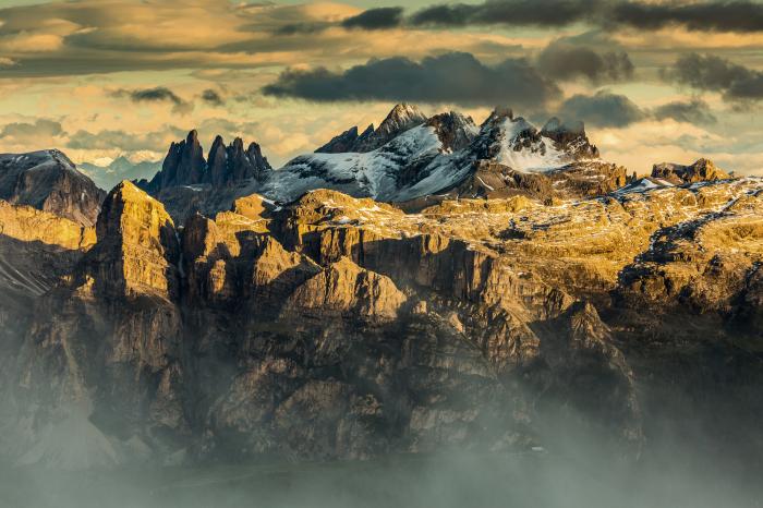 Dolomity, nakładające się na siebie masyw Cir oraz Odle - Puez. Zdjęcie Mikołaj Gospodarek