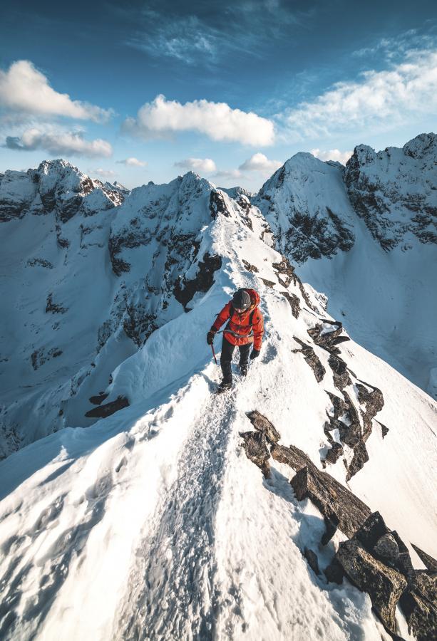 Kościelec (2155 m n.p.m.) to nie jest góra na zimowy debiut – nawet przy cudownej pogodzie i braku jakiegokolwiek zagrożenia lawinowego. Teren jest stromy z silną ekspozycją, umiejętność chodzenia w rakach jest konieczna. Zanim więc na niego się zdecydujecie, idźcie na przykład na Trzydniowiański Wierch (1765 m n.p.m.), gdzie tę sztukę opanujecie do perfekcji, a przepaście są mniejsze, by nie powiedzieć minimalne. Albo pokonajcie Czerwone Wierchy, wjeżdżając kolejką na Kasprowy Wierch. Taka kilkugodzinna wycieczka granią, przygotuje Was na polski Matterhorn.