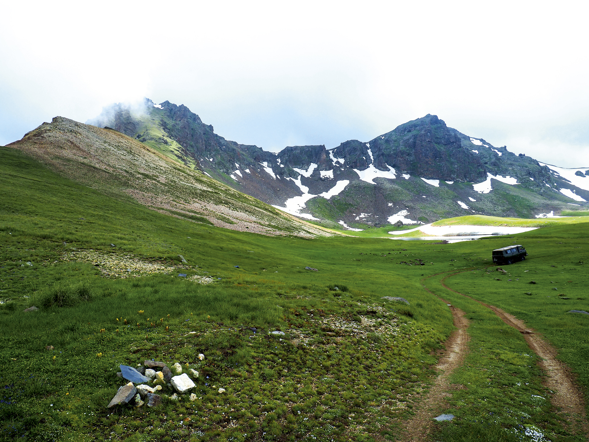 Finisz sączenia wina (przez nas dorosłych) i herbaty (przez syna) określa słońce zbliżające się do granicy horyzontu. Widzę jak pasterze schodzą z łąk. Miło żegnamy gospodarzy, których znamy z wcześniejszych podróży po prowincji Sjunik i rozbijamy namiot nieopodal w rzadkim sosnowym zagajniku. Na północy, spośród chmur odsłania się nasz jutrzejszy cel – góry na granicy Armenii i nieuznawanego państwa Górskiego Karabachu, choć Ormianie wolą starożytną nazwę Arcach.
