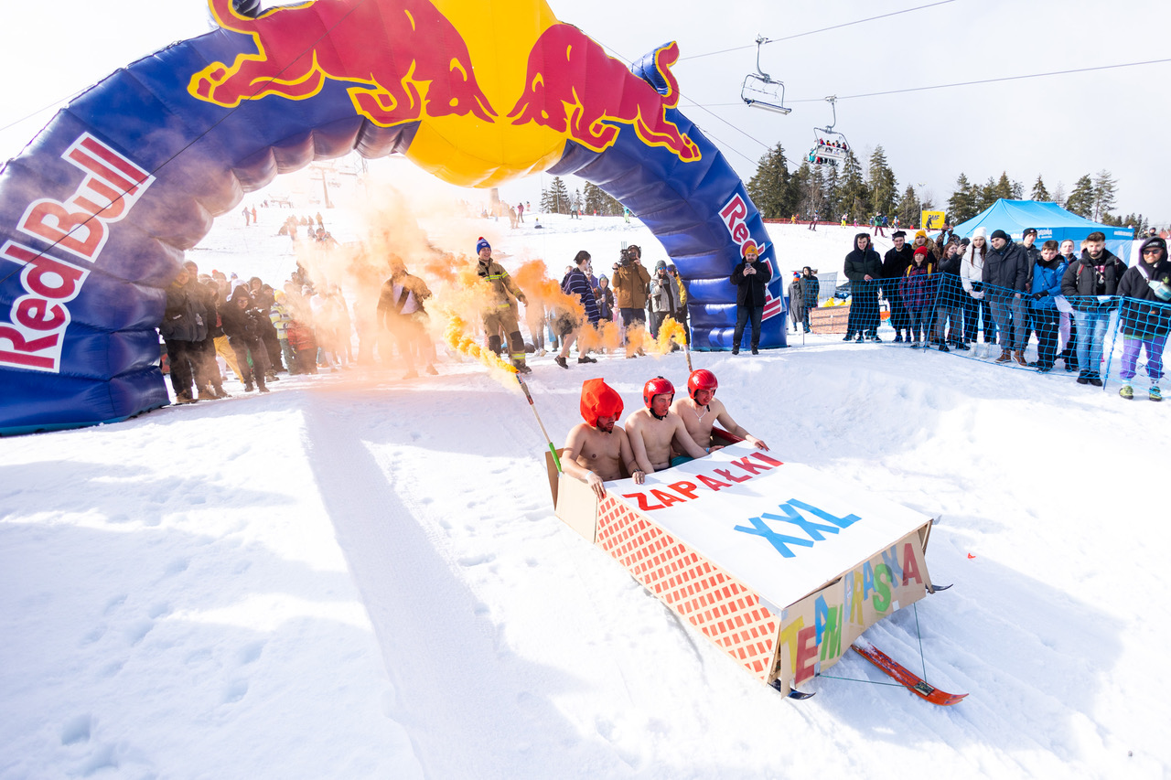 Red Bull Jump & Freeze to szalony konkurs skoków do lodowatej wody. W sobotę 25 lutego na stok w Kotelnicy Białczańskiej przybyło 41 drużyn z samodzielnie skonstruowanymi, latającymi maszynami. Uczestnicy zjeżdżali po 60-metrowym torze zakończonym skocznią i lądowali wprost do basenu, wypełnionego wodą o temperaturze ok. 5 stopni. Show i skoki wszystkich morsujących zawodników oceniało jury w składzie: tiktokerka Maria Jeleniewska, kostiumografka Malwina Wędzikowska, skialpinista Andrzej Bargiel i youtuber Dawid Frank. Zwyciężyła drużyna Spartan Boys.