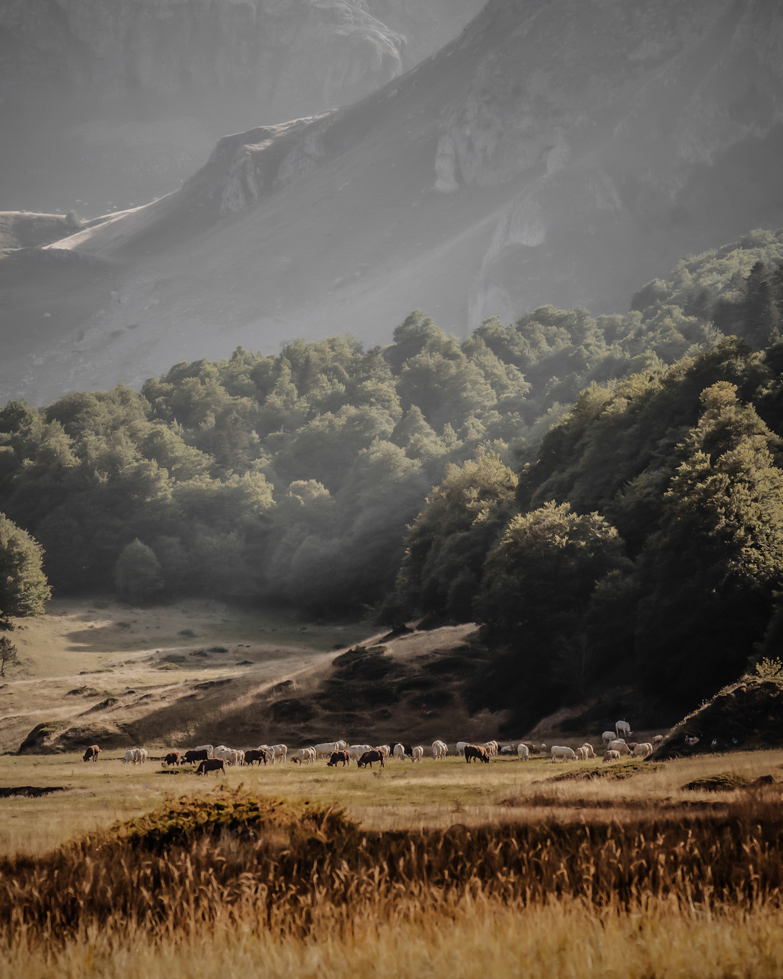 Już na samym początku trekkingu, minęła nas swobodnie spacerująca grupa dzikich koni. Nie sądziłam, że jeszcze gdzieś w zachodniej Europie spotkam taki widok. Z każdym kolejnym metrem Pireneje otwierały się coraz bardziej. Wokół nas ogromne przestrzenie podświetlone miękkim, ciepłym, popołudniowym światłem, a pomiędzy nimi stada zwierząt. I cisza przerywana tylko odgłosami drapieżnych ptaków, a po zmroku konia skubiącego trawę tuż obok naszego namiotu. Prawdziwe królestwo natury.