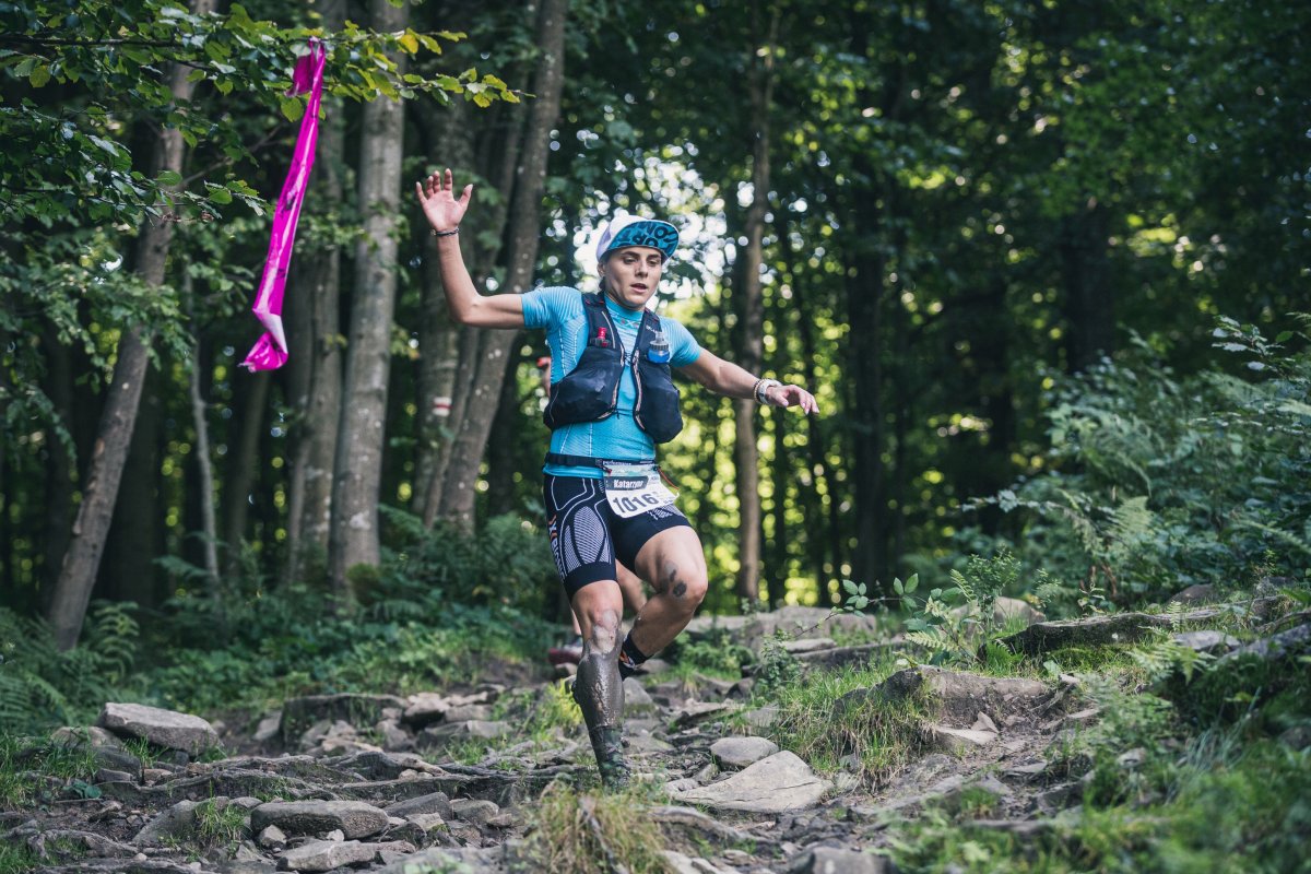 Na zbiegu do Tylicza każdy myśli już o mecie. Ale znaki nagle kierują nas pod most, a potem frontalnie po stoku narciarskim, by na koniec wciągnąć wycieńczonych biegaczy do koryta rwącej rzeki Muszynki. Wtedy mija nas Amerykanin Hawks. Świeży, zmotywowany i mający 90 km w nogach. Zaczyna podbieg tam, gdzie większość śmiertelników nie ma siły już iść.