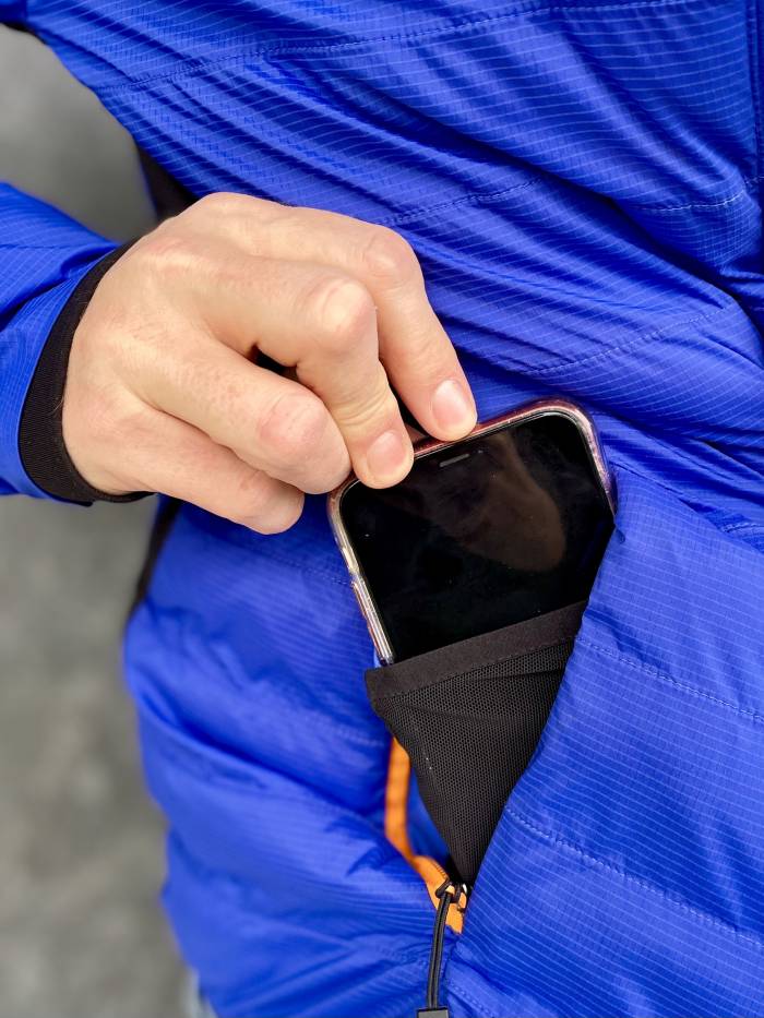 Przydają się też dwie obszerne kieszenie zewnętrzne, a w jednej z nich ukryta jest dodatkowa kieszeń. Mieści się w niej np. telefon. Osadzona jest w taki sposób, że nawet przy otwartym zamku kieszeni telefon nie powinien z niej wypaść. Jest jeszcze jedna wewnętrzna kieszeń zamykana na zamek oraz komora, gdzie można zmieścić m.in. gogle. Z kolei rękawy kurtki mają elastyczne ściągacze wokół mankietów, wyposażone w otwory na kciuki. Dzięki temu mamy gwarancję, że mankiet nie ucieknie nam z rękawiczki podczas podchodzenia.