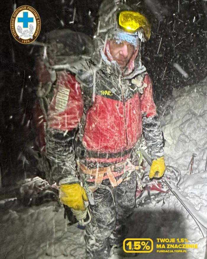 Ratownicy mieli utrudnione zadanie w dotarciu do mężczyzny. Padał śnieg, a wiatr w porywach przekraczał 90km/h.