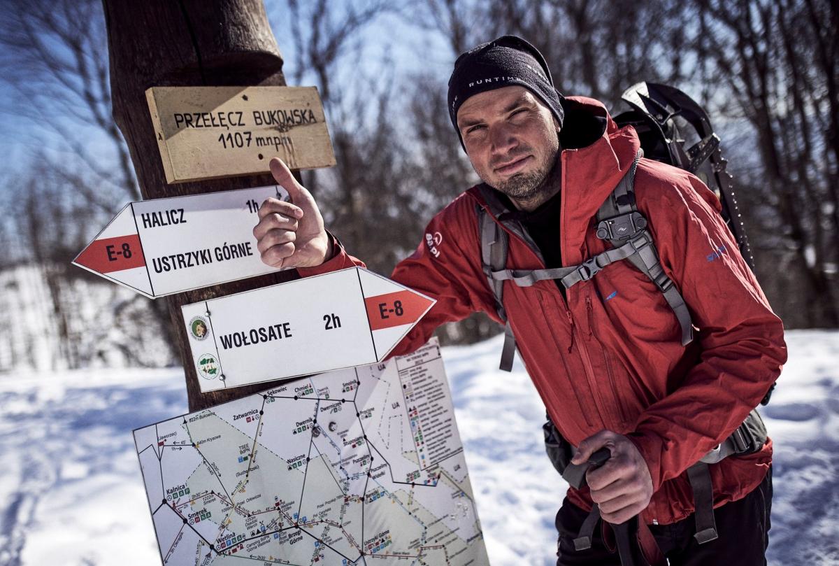 Dziś o 13:00 znany polski długodystansowiec Łukasz Supergan dotarł do Przełęczy Bukowskiej w Bieszczadach kończąc projekt Zimowego Przejścia Górami Polski.