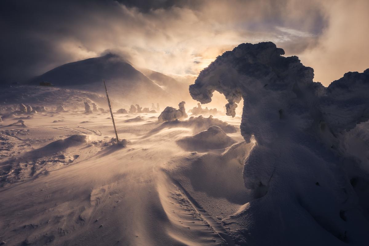 Mówią o niej, że to najbardziej wietrzna góra w Europie. Wyliczono nawet, że na szczycie wieje przez ponad 300 dni w roku. Niektóre huragany liczą ponad 200 km/h. Ale najwyższa góry Karkonoszy przyciąga o każdej porze roku, a nawet o każdej porze dnia.