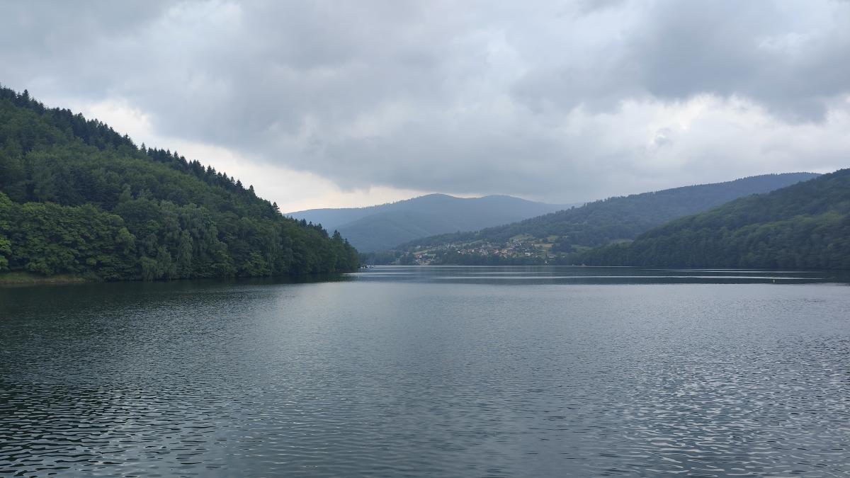 Schodzimy do Jeziora Międzybrodzkiego (Żarnówka Mała, 320 m n.p.m.), nerwowo patrząc w niebo. Po trzech słonecznych dniach zapowiadają deszcze, niektóre prognozy nie wykluczają burz. Chcemy zdążyć przed nimi.