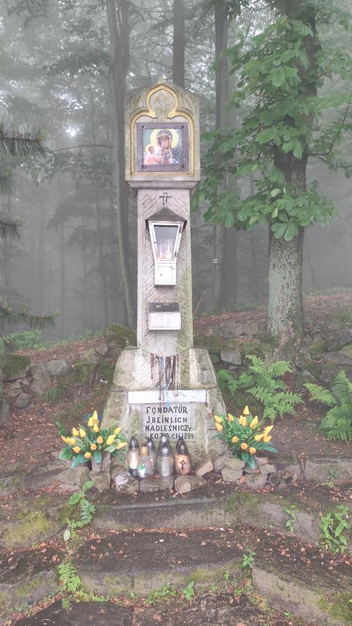 Rozpoczynamy ostatnie podejście na Hrobaczą Łąkę (828 m n.p.m.). W górę mamy ponad 500 metrów. Szukamy rezerw energii. Gdy po godzinie zatrzymujemy się na krótki posiłek, z nieba lunęło. Po raz pierwszy zakładamy kurtki i przyspieszamy tempo. Stajemy u celu po 100 minutach. Dawniej była tu drewniana wieża triangulacyjna. Obecnie stoi wielki stalowy krzyż wysoki na 35 metrów, oświetlony nocą 12 lampami. Pod nim znajduje się platforma widokowa, ale dziś wszystko zasłaniają chmury.