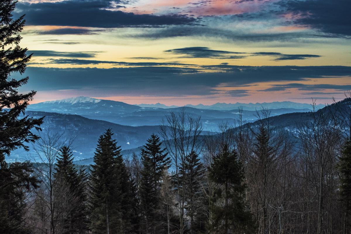 Wylewając siódme poty, melduje się na Przełęczy u Panienki (739 m n.p.m.). Powiedzmy, że prawie… bo po chwili taśmy ponownie kierują mnie na łeb na szyję, hen w dolinę. Z siodła zapamiętałem niewiele. Tyle, że jej nazwa pochodzi od kapliczki Najświętszej Maryi Panny („Panienki”), ufundowanej przez nadleśniczego Juliusza Beinlicha w 1884 roku. Co ciekawe, w zamian za cudowne ocalenie życia przed wilkami. I chyba nade mną też czuwa siła wyższa, gdy wreszcie po 34 km dostrzegam schronisko na Chrobaczej. Na polanie sielanka – rodziny, dzieci, kocyki. A na horyzoncie bajeczna panorama Babiej Góry z Tatrami na ostatnim planie. Aż korci człowieka, żeby tu usiąść, położyć się i leżeć aż do zachodu słońca. Ale jak się powiedziało A, to trzeba doturlać do końca te 10 km.