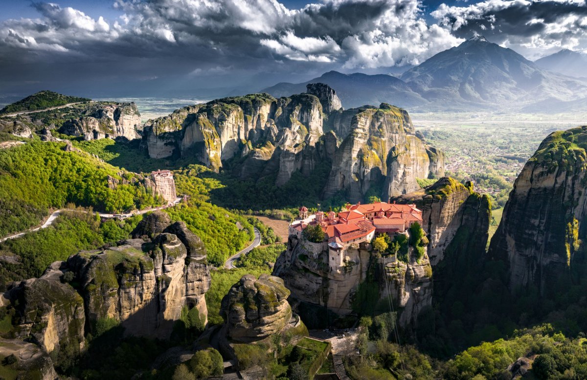 Pomiędzy wysokim masywem Olimpu i rozległym pasmem gór Pindos, na skraju Niziny Tesalskiej, leży wyjątkowe miejsce na mapie Grecji - Meteory. Widoczne nawet z kilkudziesięciu kilometrów skalne filary osiągają do 500 metrów wysokości i zalicza się je do najładniejszych grup skalnych w Europie.